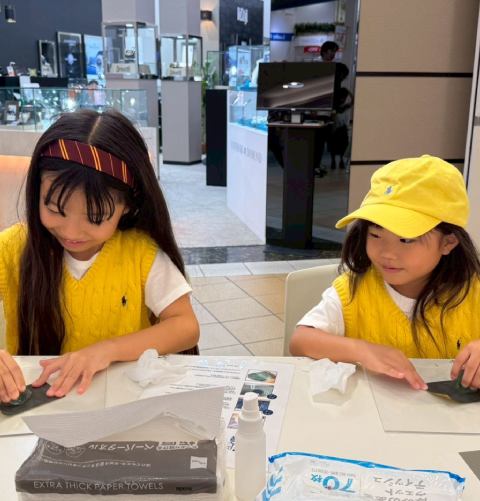 最後に、石に水を吹きかけてきれいになるようキッチンペーパーでふきとります。ピカピカになったら完成です。