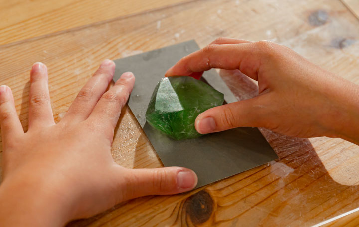 最後に、石に水を吹きかけてきれいになるようキッチンペーパーでふきとります。ピカピカになったら完成です。